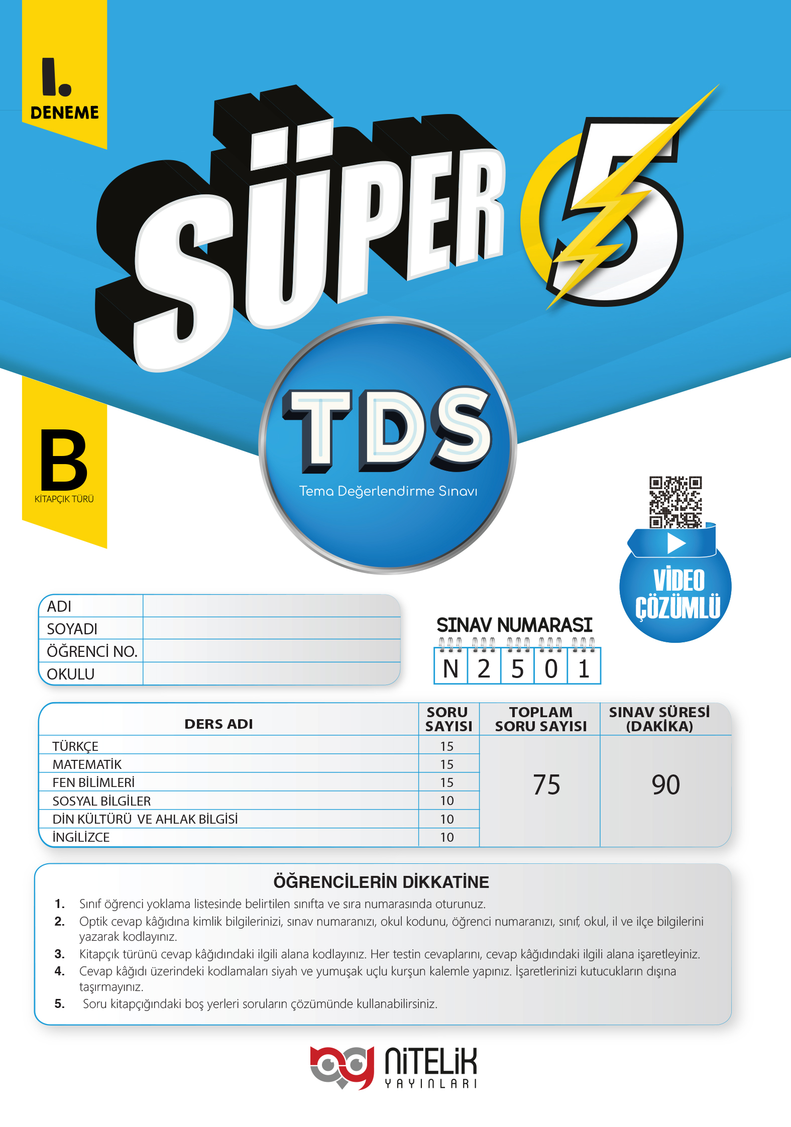 Süper 5. Sınıf KDS Deneme 1-A Kitapçığı