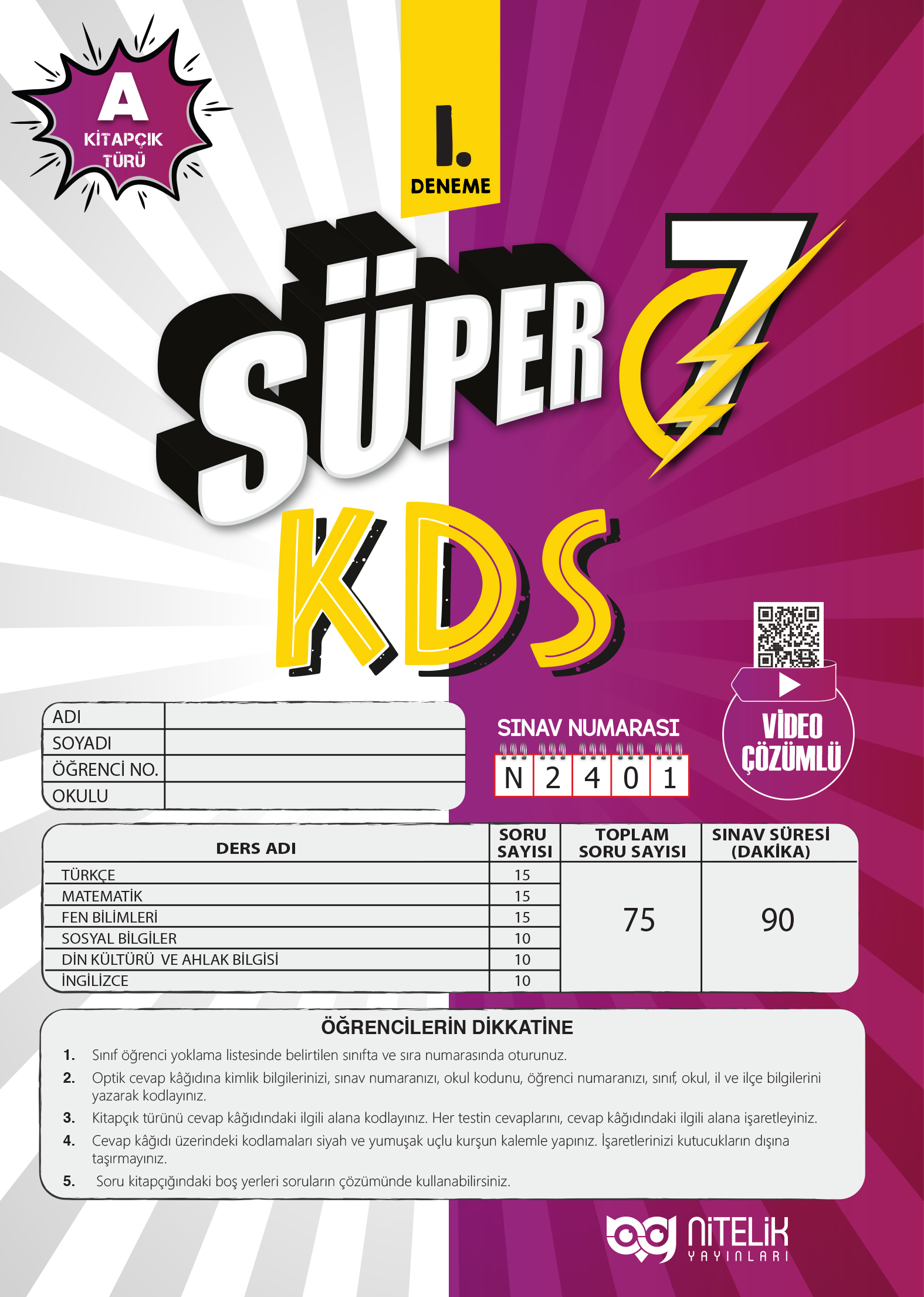Süper 7. Sınıf KDS Deneme 1-A Kitapçığı