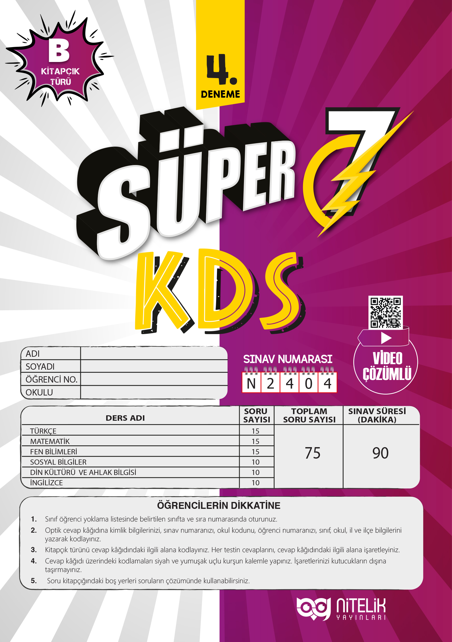 Süper 7. Sınıf KDS Deneme 4-B Kitapçığı