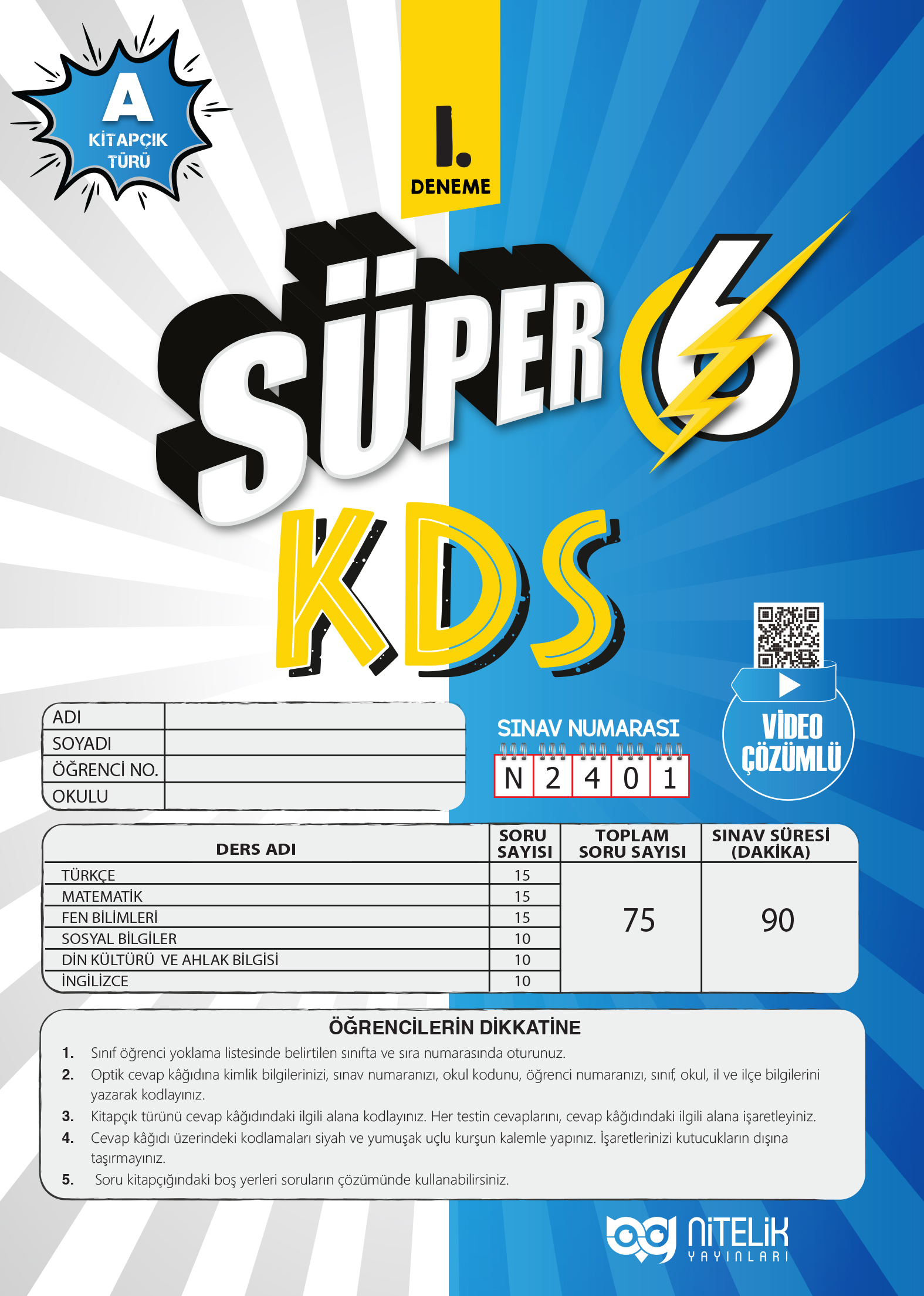 Süper 6. Sınıf KDS Deneme 1-A Kitapçığı