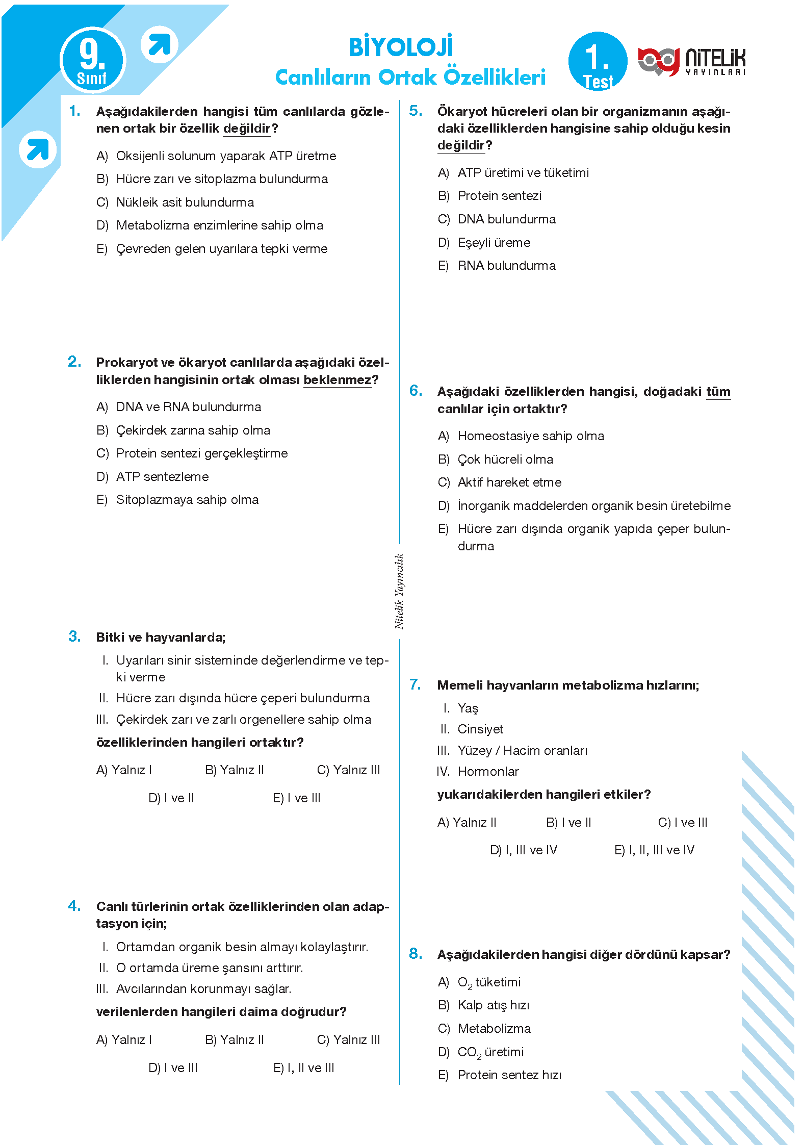 9. SINIF NİTELİK BİYOLOJİ BECERİ TEMELLİ SORU KİTABI (Versiyon 2)