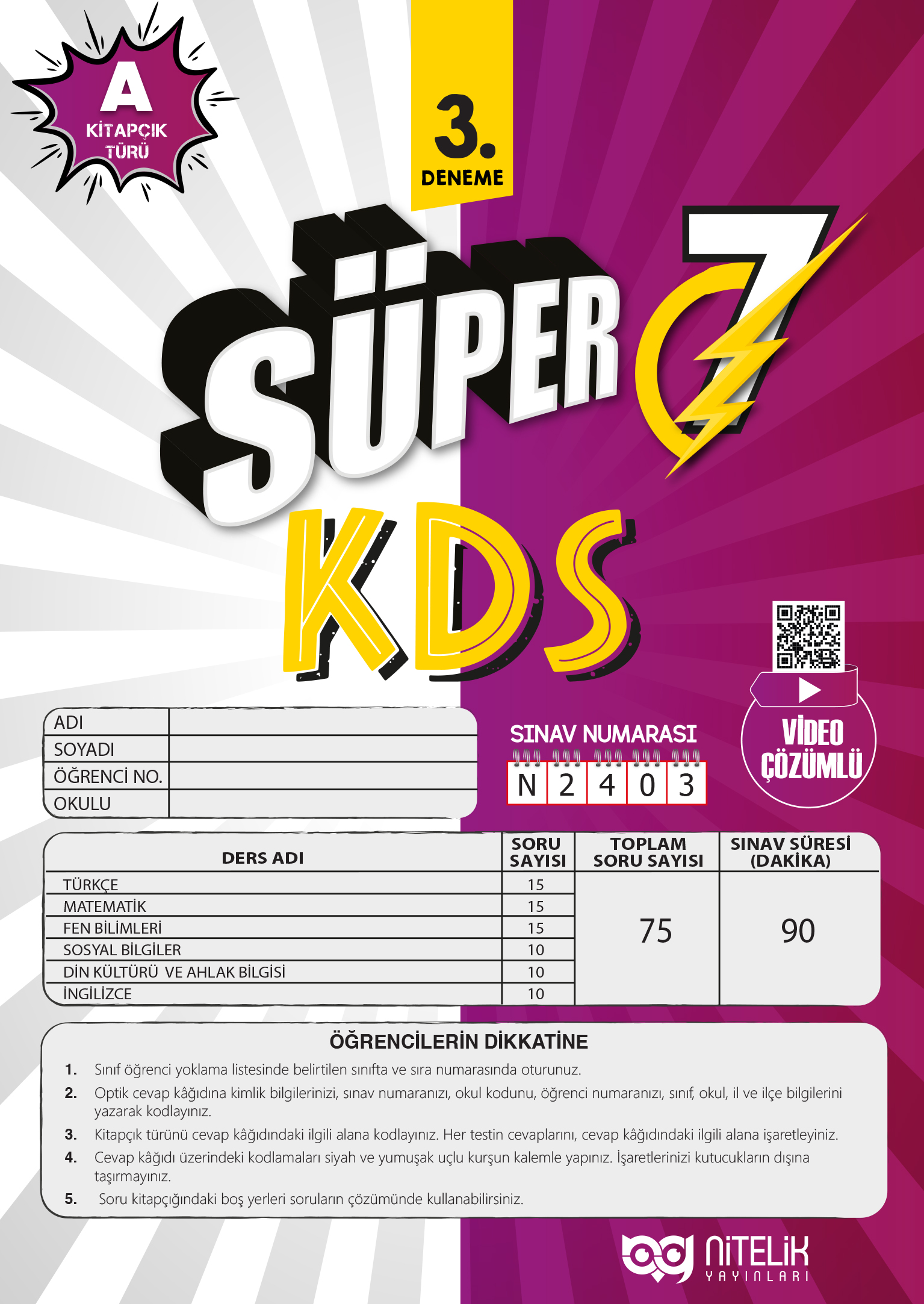 Süper 7. Sınıf KDS Deneme 3-A Kitapçığı