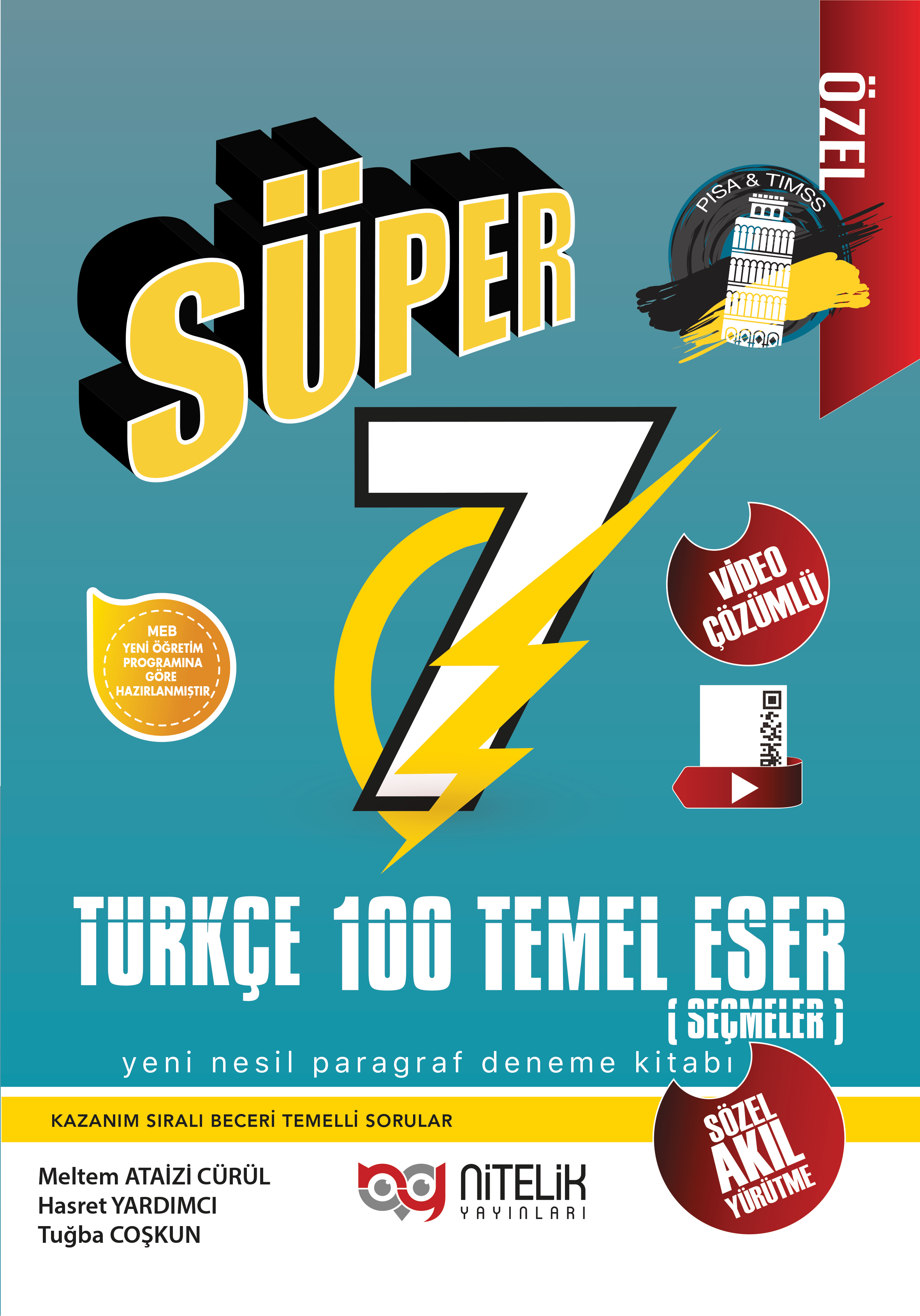 Süper 7 Türkçe 100 Temel Eser (Seçmeler) Yeni Nesil Paragraf Deneme Kitabı